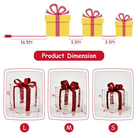 3 Pieces Christmas Lighted Gift Boxes Decorations with 60 LED Lights for Indoor and Outdoor