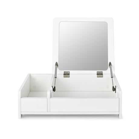 Compact Bay Window Makeup Dressing Table with Flip-Top Mirror-White