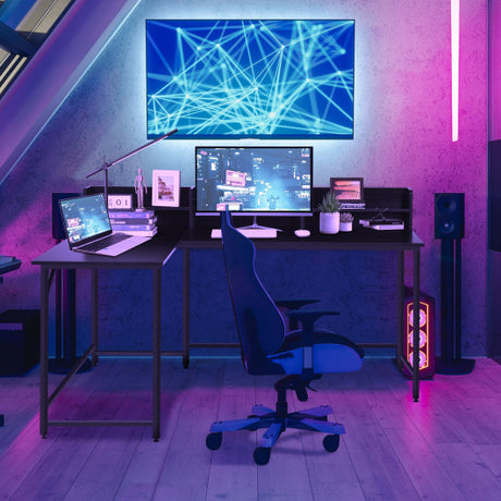 5.5 Inch L-shaped Computer Desk with Bookshelf-Black