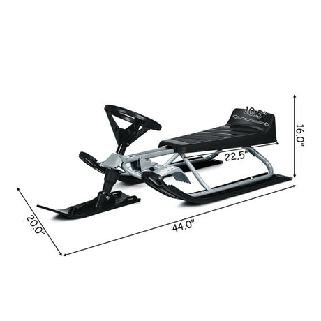 Kids Snow Sled with Steering Wheel and Double Brakes-Black