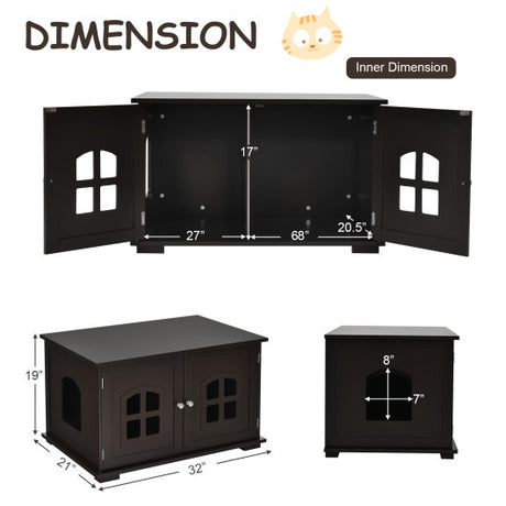 Large Wooden Cat Litter Box Enclosure Hidden Cat Washroom with Divider Coffee
