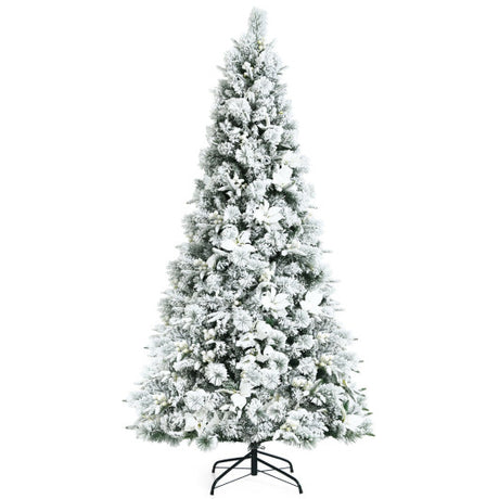 7 Feet Snow Flocked Christmas Tree with Poinsettia Flowers
