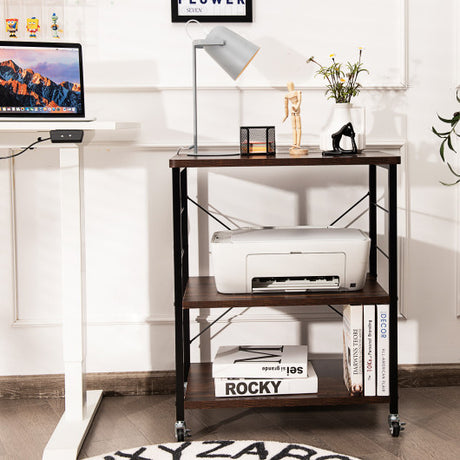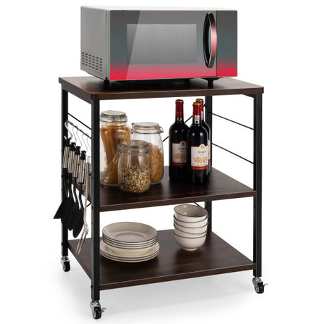 3-Tier Kitchen Baker's Rack Microwave Oven Storage Cart with Hooks-Charcoal Brown