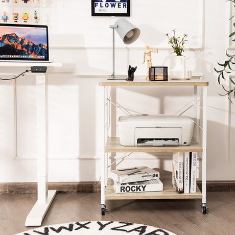 3-Tier Kitchen Baker's Rack Microwave Oven Storage Cart with Hooks-Light Brown