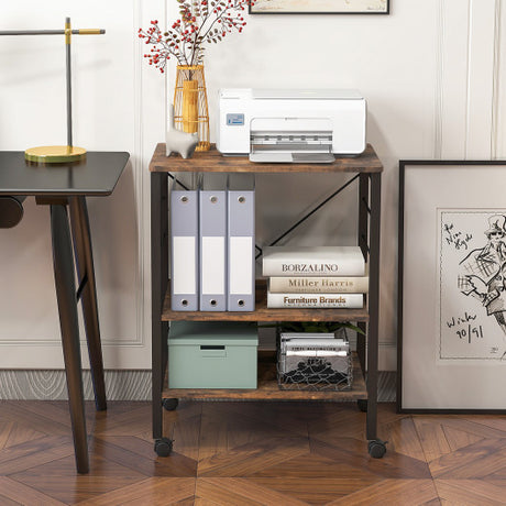 3-Tier Kitchen Serving Cart Utility Standing Microwave Rack with Hooks Brown