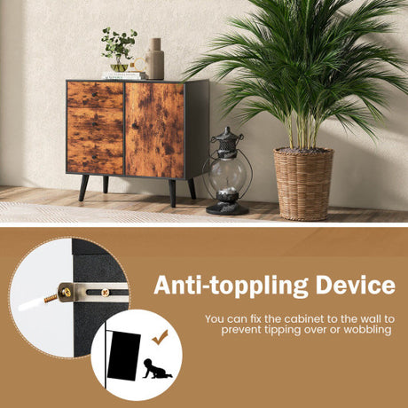 Mid-Century Wood Storage Cabinet with Door and 3 Drawers