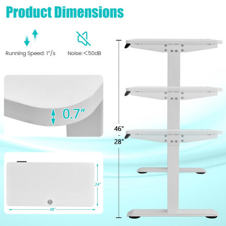 Electric Height Adjustable Standing Desk with Memory Controller-White