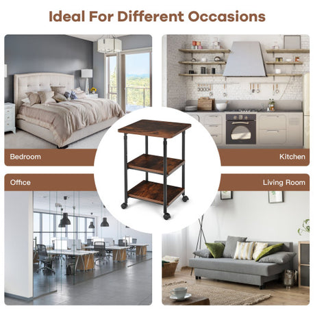 3-tier Adjustable Printer Stand with 360° Swivel Casters-Brown