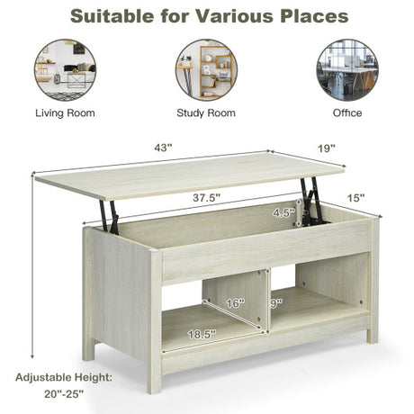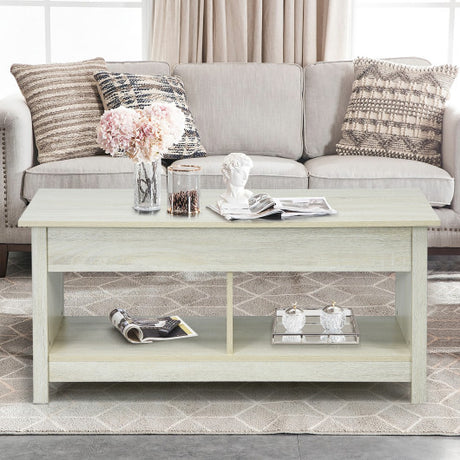 Lift Top Coffee Table with Hidden Storage Compartment and Lower Shelf for Study Room-White