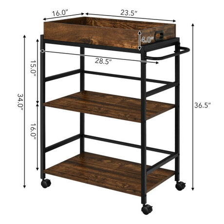 3-Tier Kitchen Serving Bar Cart with Lockable Casters and Handle Rack for Home Pub-Rustic Brown