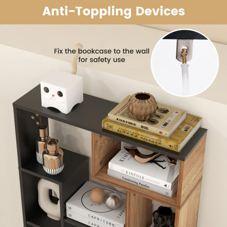 47-Inch Tall Bookshelf for Home Office Living Room-Natural & Black