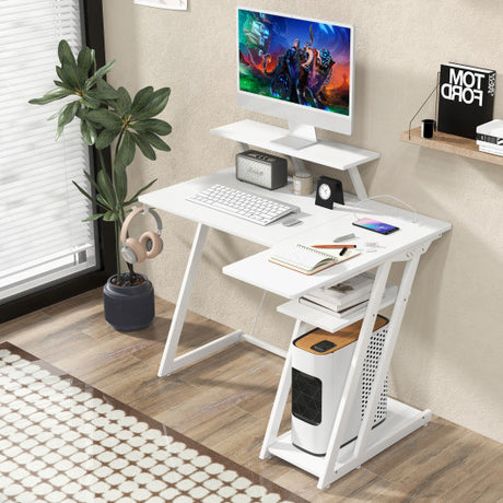 L Shaped Gaming Desk with Outlets and USB Ports-White