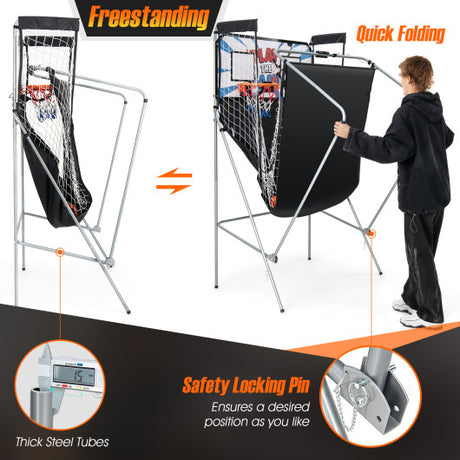 Indoor Double Electronic Basketball Game with 4 Balls-White