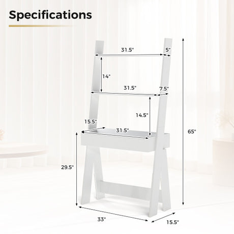 Ladder Shelf Desk with Countertop Drawer and Anti-Toppling Device-Oak
