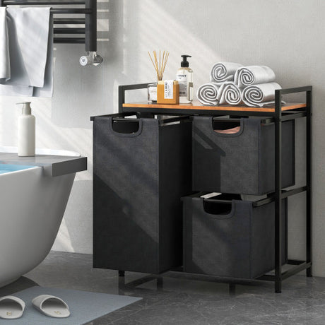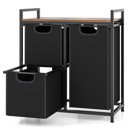 Laundry Basket Organizer Dirty Clothes Hamper with Shelf and 3 Removable Bags-Rustic Brown
