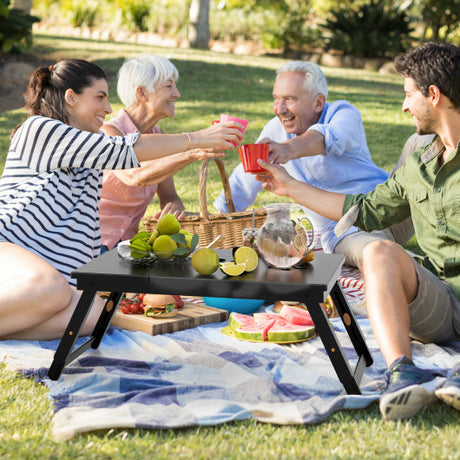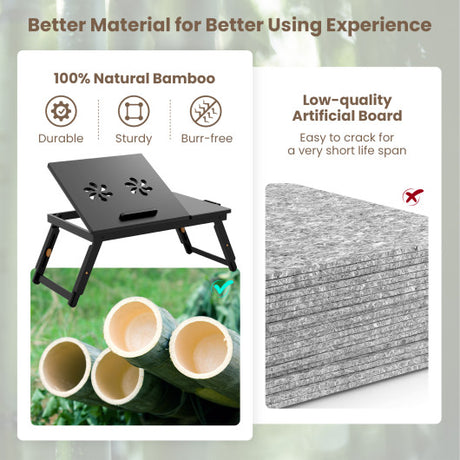 Adjustable Bamboo Laptop Desk with Tilting Top and Drawer-Brown
