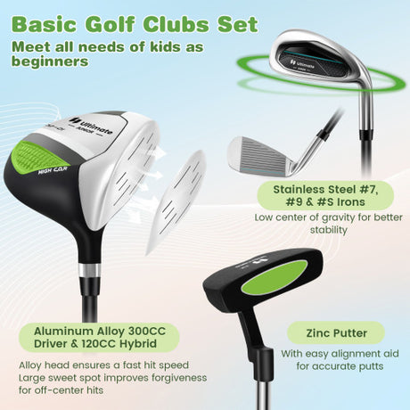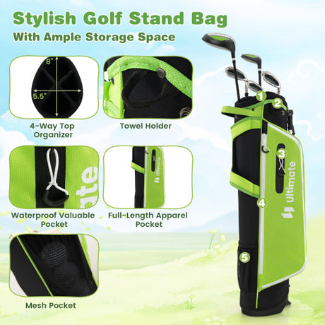 Junior Complete Golf Club Set with Stand Bag Rain Hood-Green