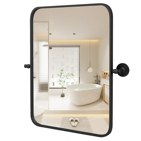 30 x 22 Inch Black Metal Framed Pivot Rectangle Wall-Mounted Mirror