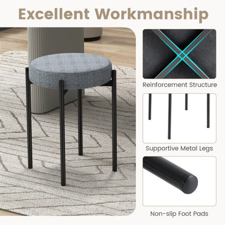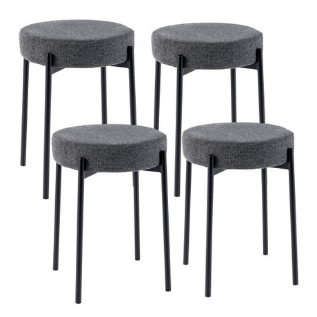 Bar Stools Set of 4 Upholstered Kitchen Stools with Foot Pads-Dark Gray
