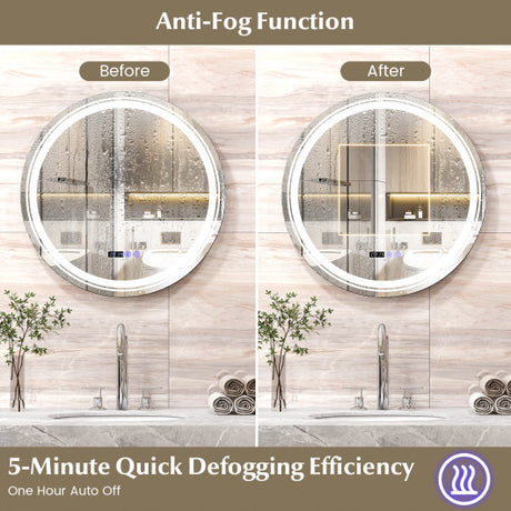Anti-Fog Round Led Bathroom Mirror with 3 Color LED Lights-S
