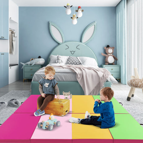 4-Panel PU Leather Folding Exercise Mat with Carrying Handles-Green