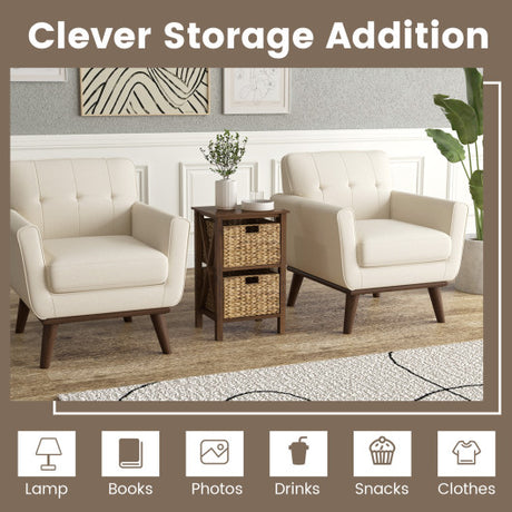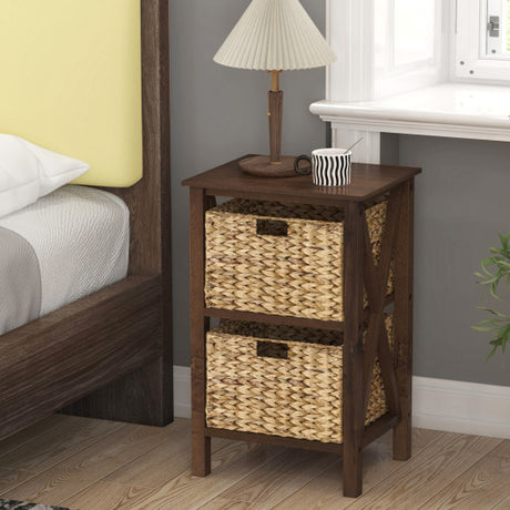 3/4-Tier Nightstand with 2 Seagrass Baskets Narrow X-Design-3-Tier