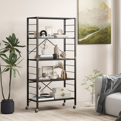 5-Tier Foldable Shelving Unit with Detachable Wheels and Anti-Toppling System-Black