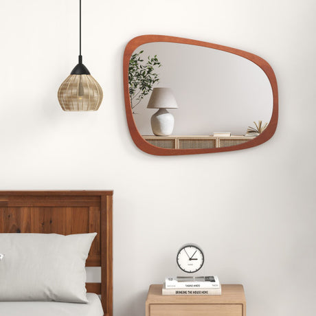 Asymmetrical Abstract Irregular Shaped Wall Mirror with Rustic Frame-Natural
