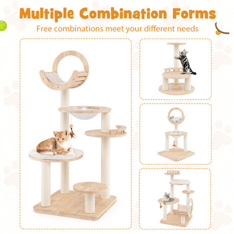 4-in-1 Large Wooden Cat Tower with Space Capsule Nest for Indoor Cats