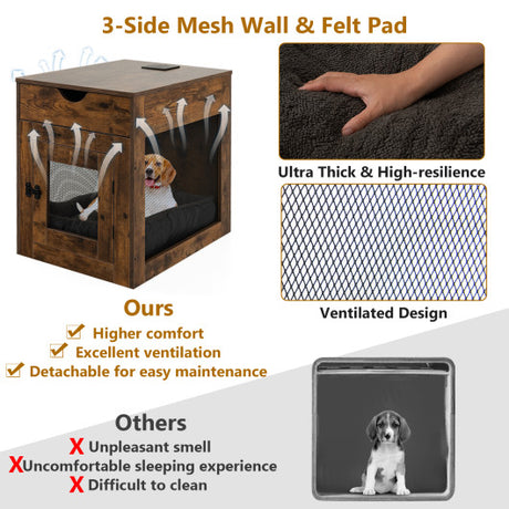 Furniture Style Dog Kennel with Drawer and Removable Dog Bed-Coffee
