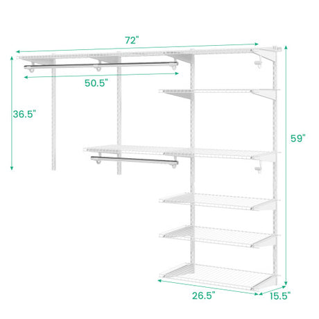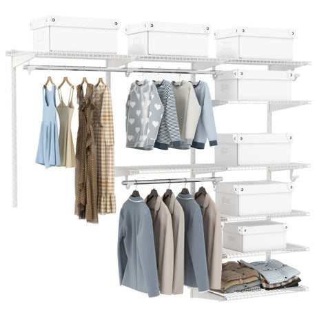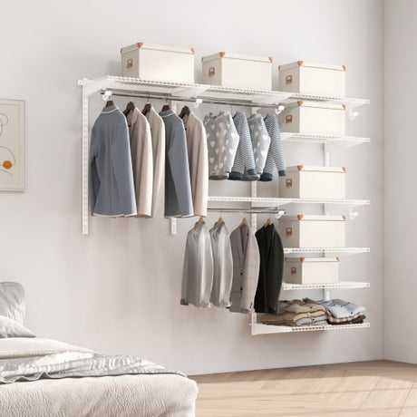 Adjustable Closet Organizer Kit with Shelves and Hanging Rods for 4 to 6 Feet-White