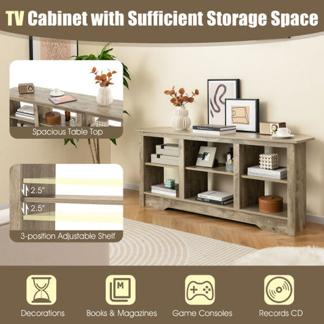 58 Inch TV Stand with 6 Open Storage Shelves for TVs up to 65 Inches-Gray