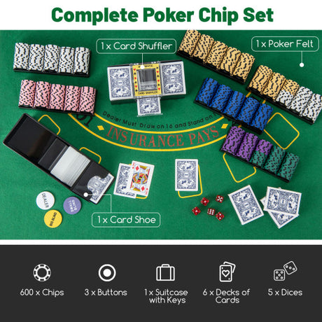 600-Piece Poker Chip Set 14 Gram Claytec Chips with Carrying Case-Black