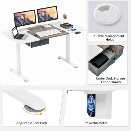 Height Adjustable Electric Standing Desk with USB Charging Port-Gray