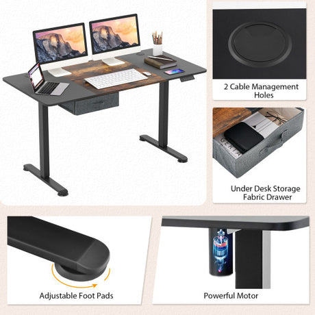 Height Adjustable Electric Standing Desk with USB Charging Port-Rustic Brown