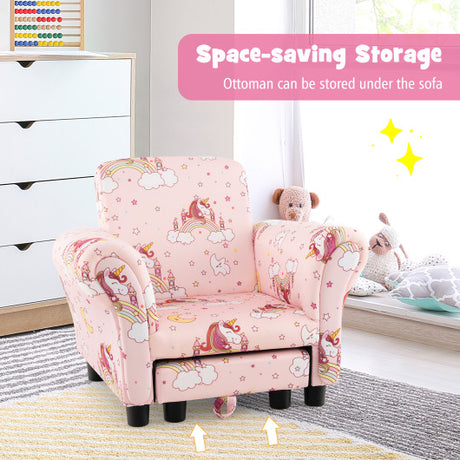 Kids Single Sofa with Cute Patterns Ergonomic Backrest and Armrests-Pink