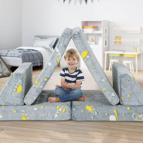 6 PCS Kids Play Couch with 4 Base Cushions and 2 Backrest Cushions-Gray