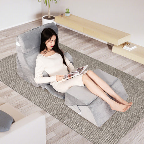 7 Pieces Bed Wedge Pillow Set with Memory Foam and Washable Cover-Gray
