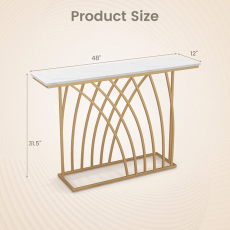 48 Inch Gold Console Table with White Faux Marble Tabletop-White