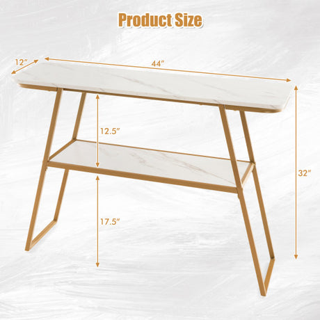 Console Table with Open Shelf Gold Metal Frame Living Room Hallway-White