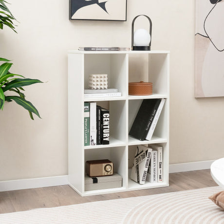Kitchen Cart on Wheels with Bamboo Top and 6-Bottle Wine Rack-White