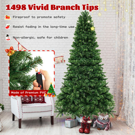 6/7/8 Feet Hinged Christmas Tree with PVC Branch Tips Warm White LED Lights-7 ft