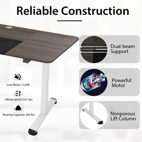 55 Inch Electric Height Adjustable Office Desk with Hook-Dark Gray