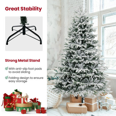 4.5/6/7 FT Artificial Pre-Lit Christmas Tree Hinged Xmas Tree with Warm White LED lights-7 ft