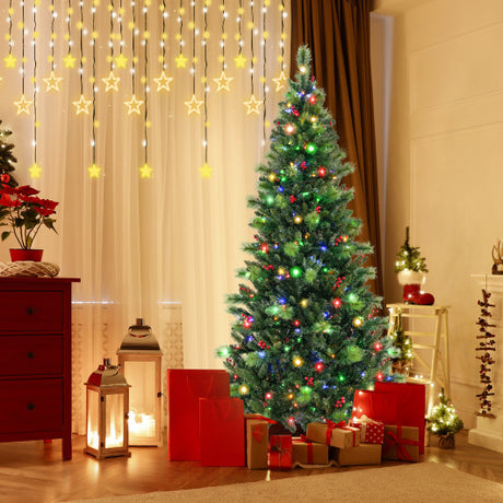 6/7/8 Feet Pre-Lit Artificial Christmas Tree with 300/400/500 LED Lights-7 ft