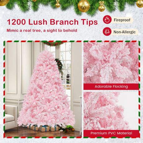 7 Feet Flocked Artificial Christmas Tree with 500 LED Lights and 1200 Branches