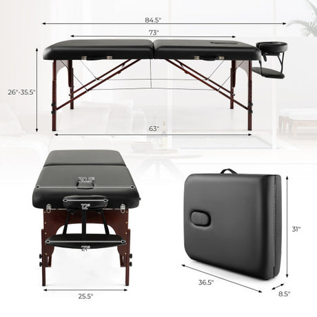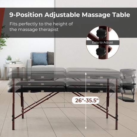 Folding Massage Table with Height-adjustable Beech Wood Frame-Black