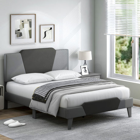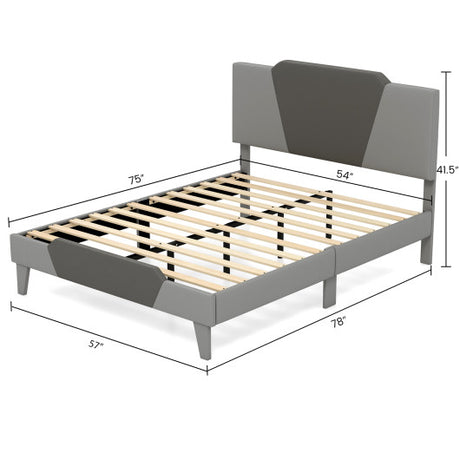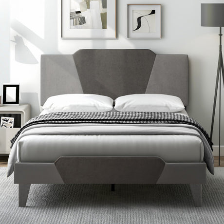 Full/Queen/Twin Velvet Upholstered Bed Frame with High Headboard-Full Size