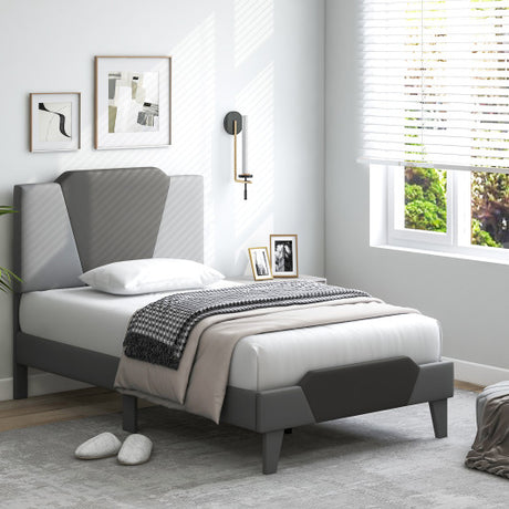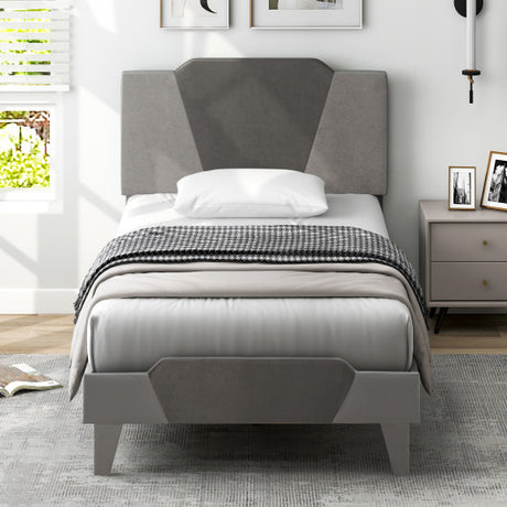 Full/Queen/Twin Velvet Upholstered Bed Frame with High Headboard-Twin Size