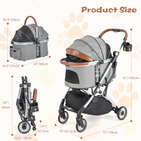 Foldable Dog Cat Stroller with Removable Waterproof Cover-Dark Gray